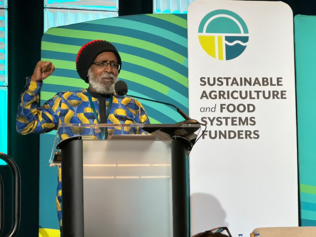 Diverse movement leaders in conversation with funders closed the conference with a reflection on “What Time Is It On the Clock of the World?” This profound question—originally posed by revolutionary food sovereignty leaders Grace Lee Boggs and Jimmy Boggs—challenges us to locate ourselves within the broader arc of social transformation and the path to justice. Malik Yakini, founder of the Detroit Black Community Food Sovereignty Network, offered a rousing keynote address that reminded us that understanding the historical moment is essential to creating the just food systems our communities deserve. Baba Malik joined fellow movement leaders and panelists Dãnia Davy, Owner, Land & Liberation, Samir Doshi, Director of Just Transitions, CS Fund, and Paula Garcia, Executive Director, New Mexico Acequia Association, for a conversation moderated by Sarah Wentzel-Fisher, Land and Agriculture Policy Officer, Thornburg Foundation. Panelists reflected on the urgency of this political moment—marked by rising authoritarianism and climate crisis—and called on funders to engage in visionary organizing to defend democracy, reimagine food and farming systems, and invest in resilient, multiracial movements for justice.