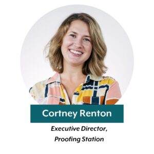 Cortney Renton, Executive Director of Proofing Station, is a seasoned food systems leader with experience driving change from farm to shelf. She is rooted in 15 years of multidisciplinary experience in research, sustainability, strategy, and fundraising roles across diverse social impact organizations.